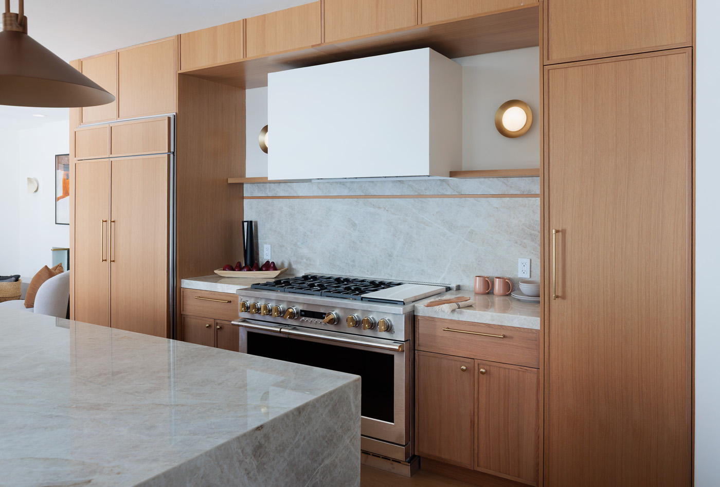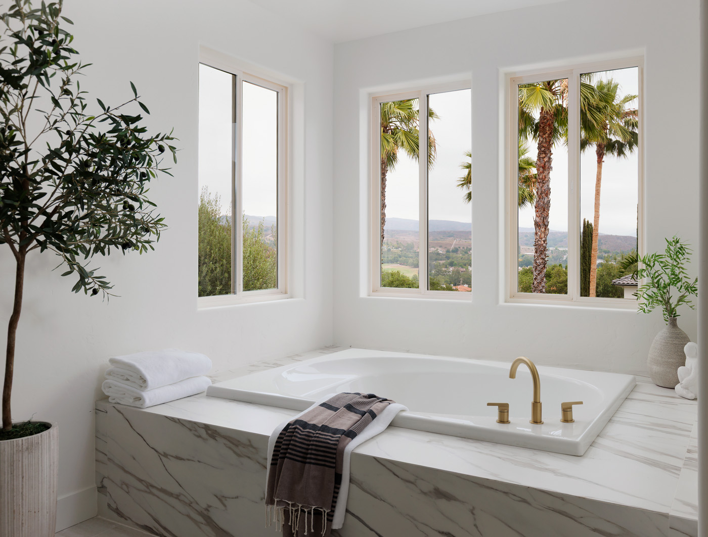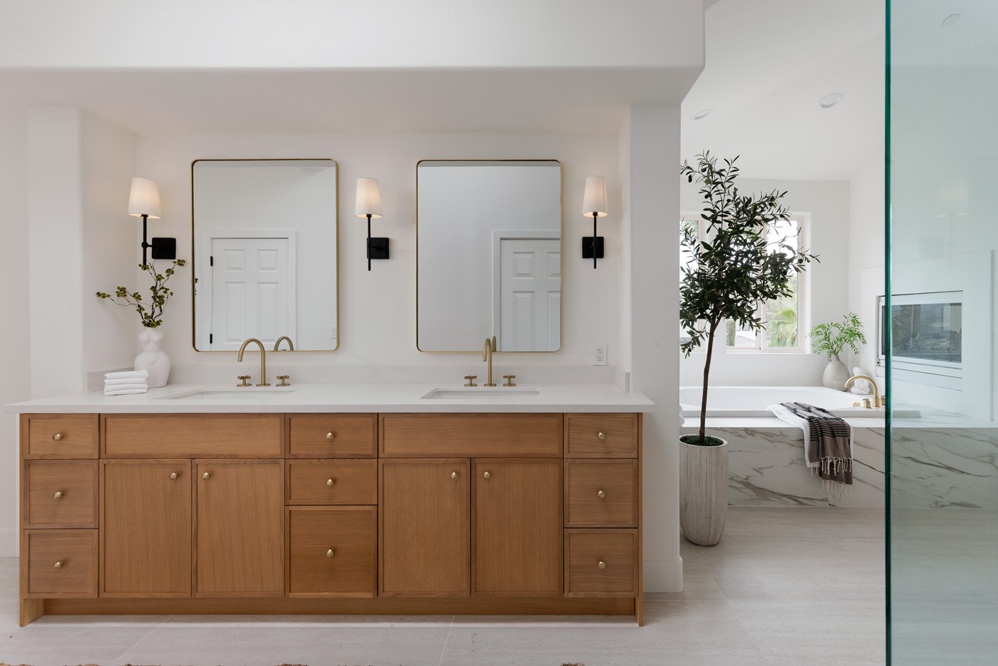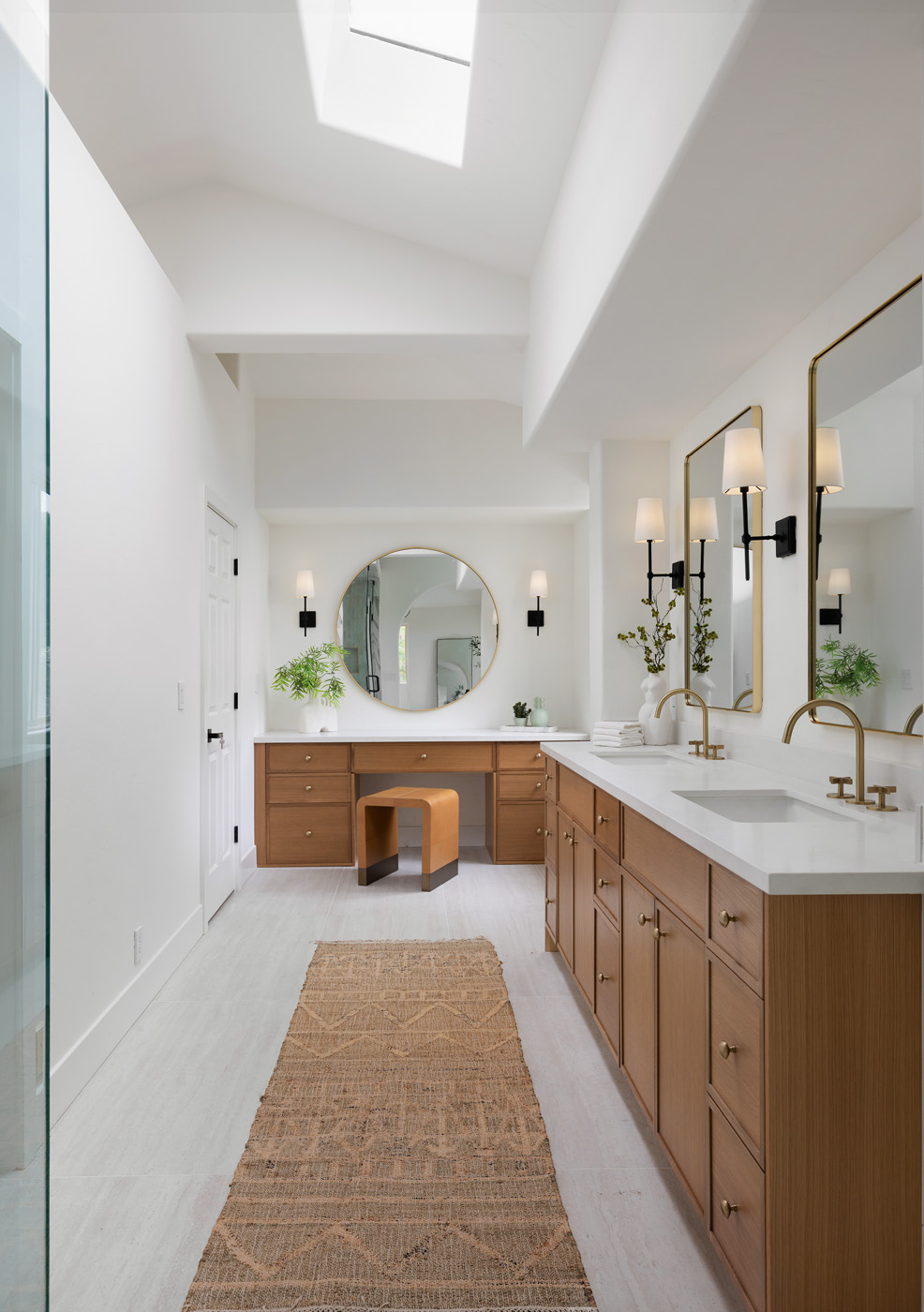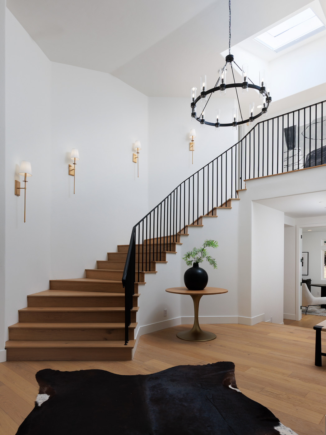 This 1996, 4,200-square-foot home needed a fresh touch and repairs throughout. The new design transformed it from a dated Spanish style into a warm transitional-modern masterpiece. Carpet and vinyl flooring were replaced with beautiful light hardwood, and all cabinetry was rebuilt in oak with natural Taj Mahal stone countertops. The old bar room was reimagined as a modern wine cellar, and every bathroom was redesigned into a sleek, contemporary space with a luxurious feel. High ceilings, abundant natural light, and organic materials throughout the home create a perfect balance of comfort and modern elegance—an ideal place to live.